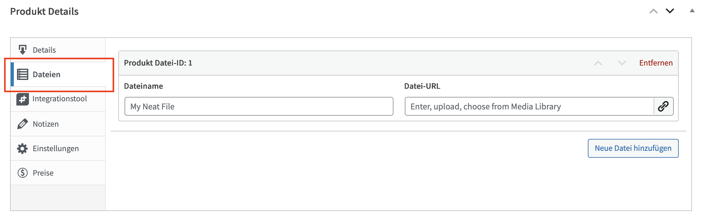 In den Produktdateien können Downloaddateien hinterlegt werden, die nach dem Kauf direkt aus der Mail heruntergeladen werden können.