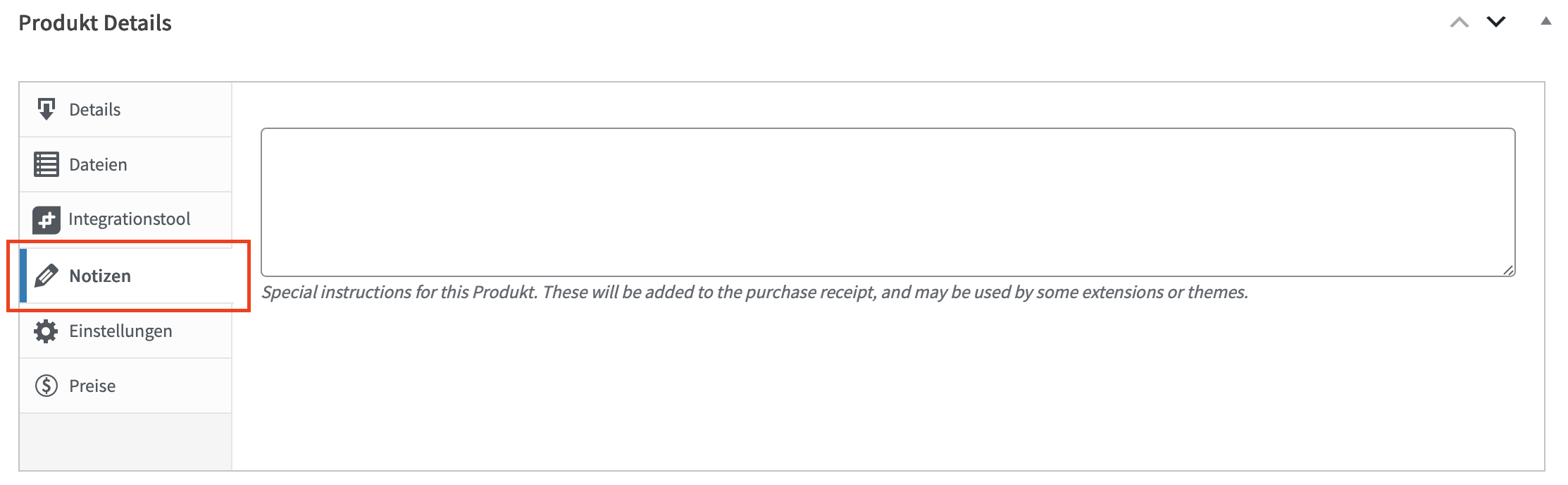 In den Notizen zum Produkt können weitere wichtige Informationen hinterlegt werden. Die Informationen in diesem Bereich werden auch auf der Kaufbestätigung erscheinen.